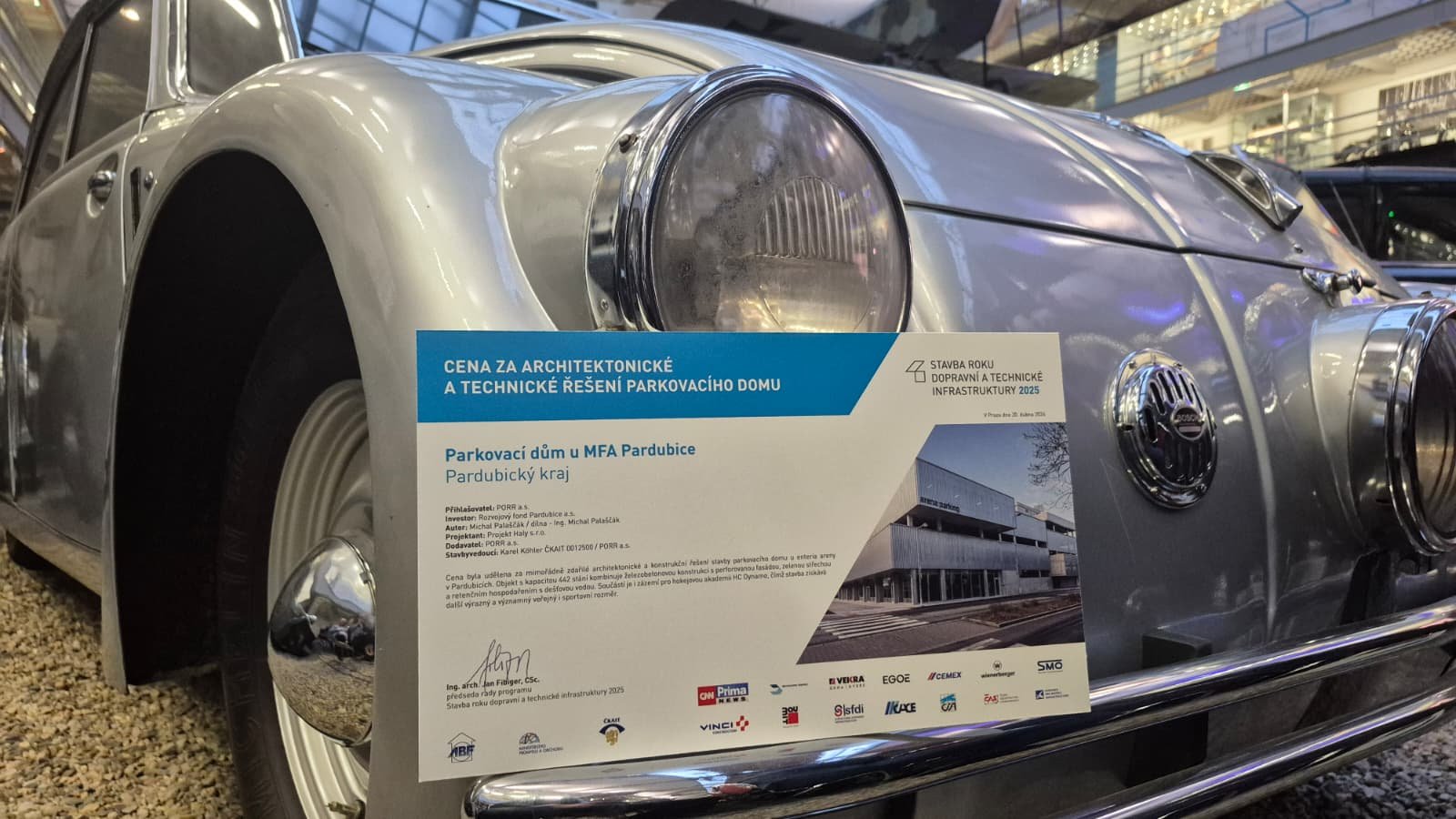Mezi oceněnými projekty se objevil i náš projekt - Parkovací dům u MFA, který získal cenu za architektonické a technické řešení. Porota ocenila moderní konstrukční přístup, funkční uspořádání a celkový přínos stavby pro okolní území.